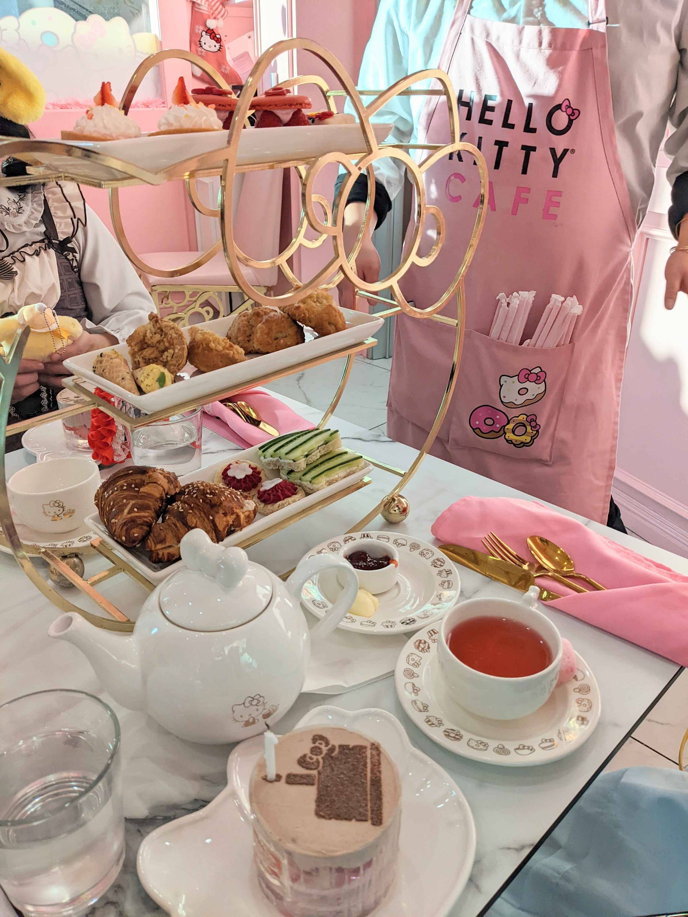 But as soon as you walk in, the aesthetics are ON POINT. The interior, plateware, and cutlery all have Hello Kitty-inspired designs. Even the beverages come in custom Hello Kitty cups and teapots. And of course, the tiered tea tray set is breathtaking.