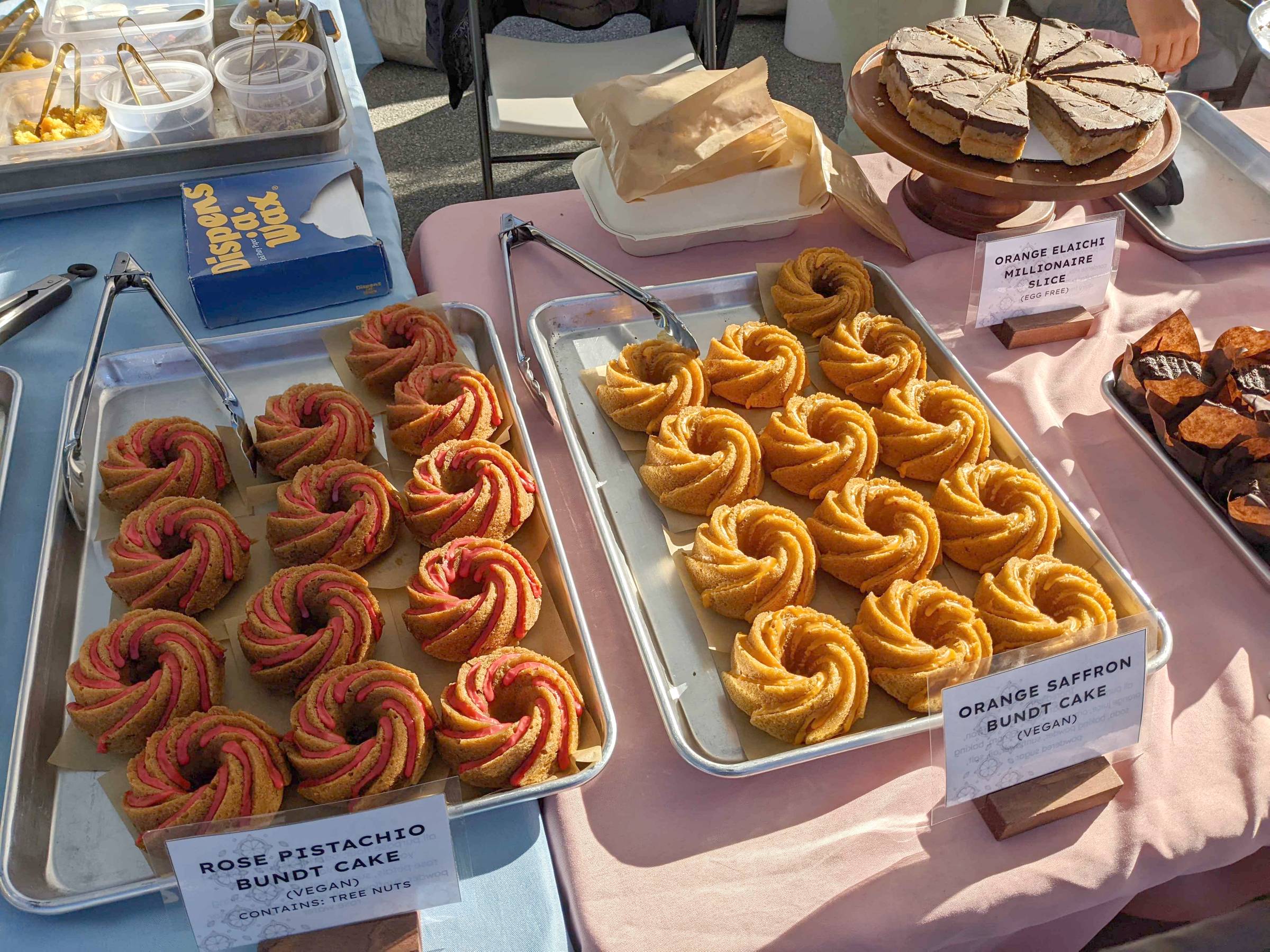 βOrange Elaichi Bakehousespecializes in South Asian flavors, with many baked goods being vegan, some gluten-free, and all of them egg-free. She's got these vegan mini bundt cakes that look like donuts - there's rose pistachio and saffron orange, I'd say the saffron orange bundt cake is my favorite of the two. It's more saffron forward than orange, but I love saffron so that's not a problem for me.
