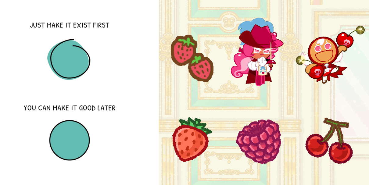 Notably, I replaced some of the placeholder art I've been using for ingredients. If you've played the demo, you've probably recognized these Cookie Run characters I've been using as placeholders because I was too lazy to draw the actual ingredients lol. But I needed to actually draw the ingredients at some point unless I wanted to wake up a cease and desist one day.
